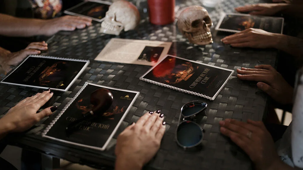 Ведущий создает атмосферу Викторианской Англии с помощью реквизита и музыки. Затем распределяет роли и объясняет правила игры. Вы с друзьями располагаетесь за столом, свет гаснет, загораются свечи. Медиум входит в транс. «Спиритический сеанс» начинается.